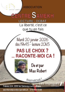 Max Robert vous propose une rencontre autour de son livre : PAS LE CHOIX ? … RACONTE-MOI CA!